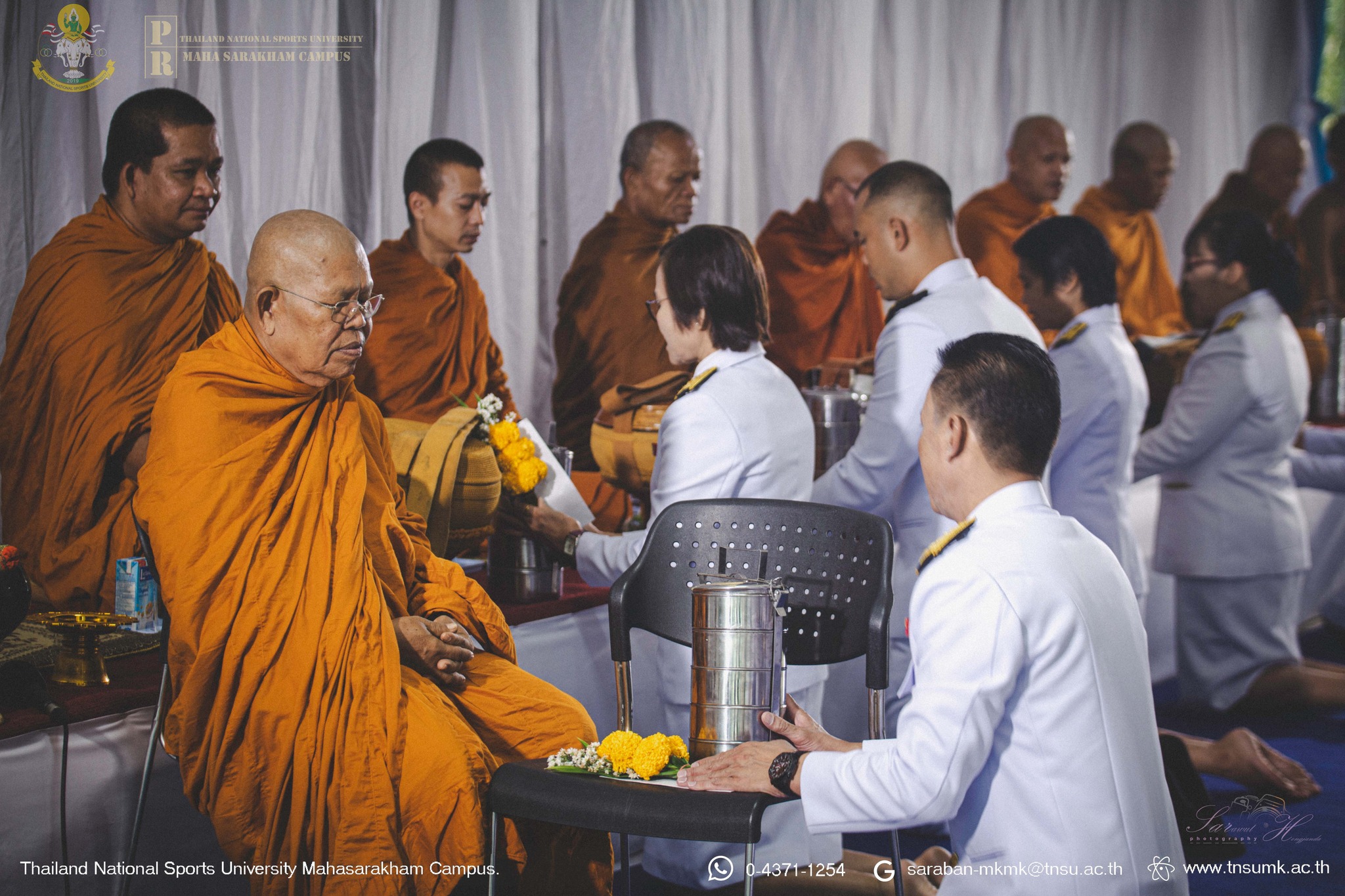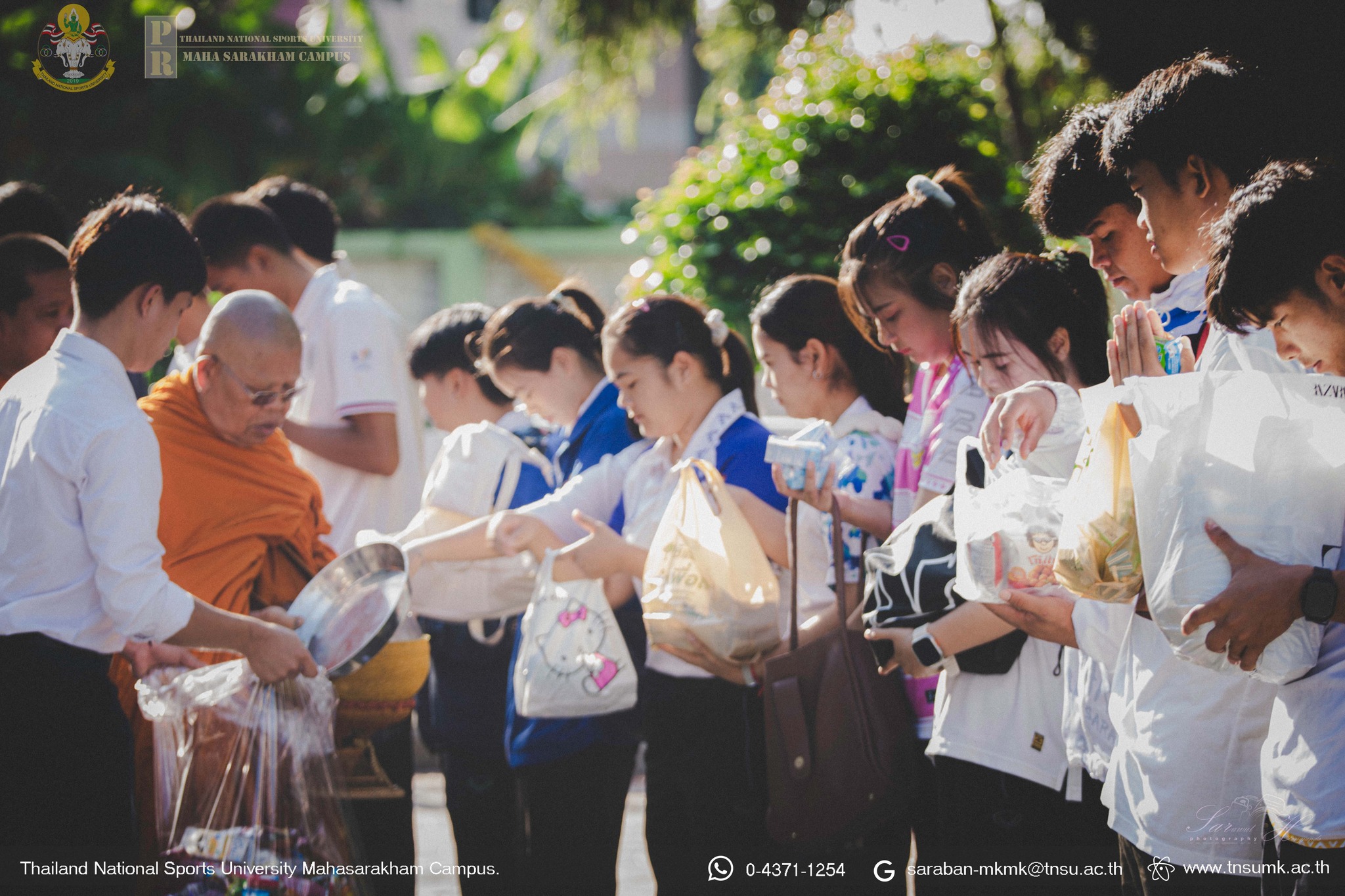เมื่อวันที่ 8 สิงหาคม 2568 เวลา 06.59 น. ณ อาคารวิทยบริการ มหาวิทยาลัยการกีฬาแห่งชาติ วิทยาเขตมหาสารคาม ดร.กิตติพงษ์ เพ็งศรี ผู้ช่วยอธิการบดีฝ่ายกิจการนักศึกษาและกิจการพิเศษ ประจำวิทยาเขตมหาสารคาม เป็นประธานจุดธูปเทียนบูชาพระรัตนตรัย ในพิธีทำบุญตักบาตรถวายเป็นพระราชกุศลเนื่องในโอกาสวันเฉลิมพระชนมพรรษาสมเด็จ พระนางเจ้าสิริกิติ์ พระบรมราชินีนาถพระบรมราชชนนีพันปีหลวง 12 สิงหาคม 2568 โดยมี คณะผู้บริหาร ข้าราชการ บุคลากร เจ้าหน้าที่ ตลอดจนนักศึกษา มหาวิทยาลัยการกีฬาแห่งชาติ วิทยาเขตมหาสารคาม ร่วมพิธีทำบุญตักบาตรพระสงฆ์ ๙ รูป ถวายเป็นพระราชกุศล ร่วมถึงเพื่อส่งเสริมและรักษาไว้ซึ่งประเพณีทำบุญตักบาตร เทิดทูน และรักษา ไว้ซึ่งสถาบันชาติ ศาสนา พระมหากษัตริย์ เป็นสิริมงคล