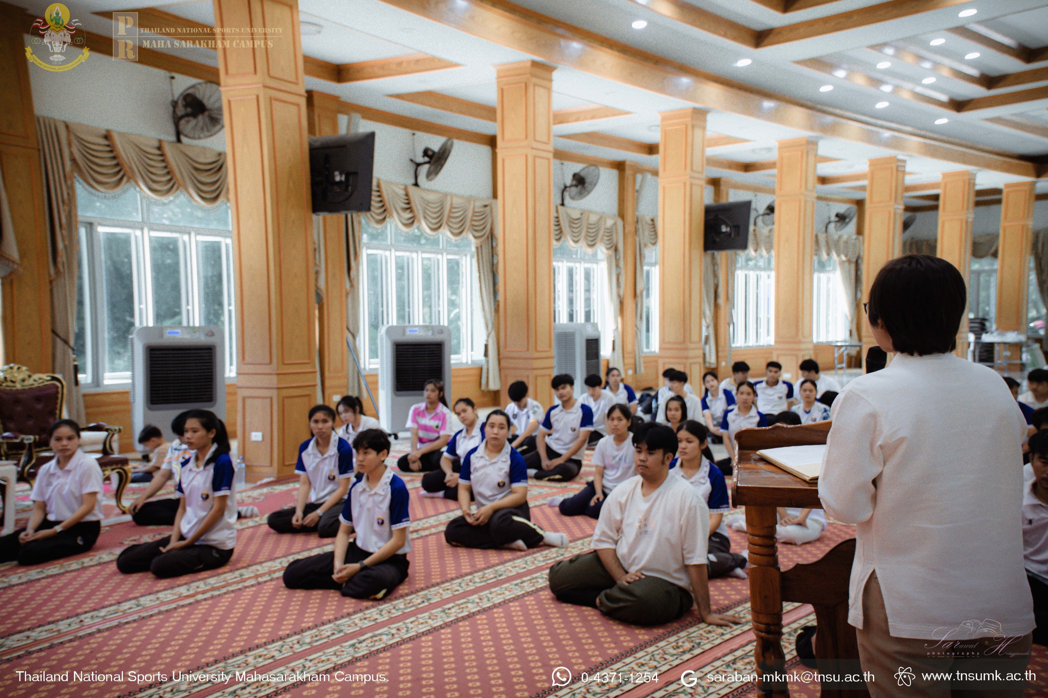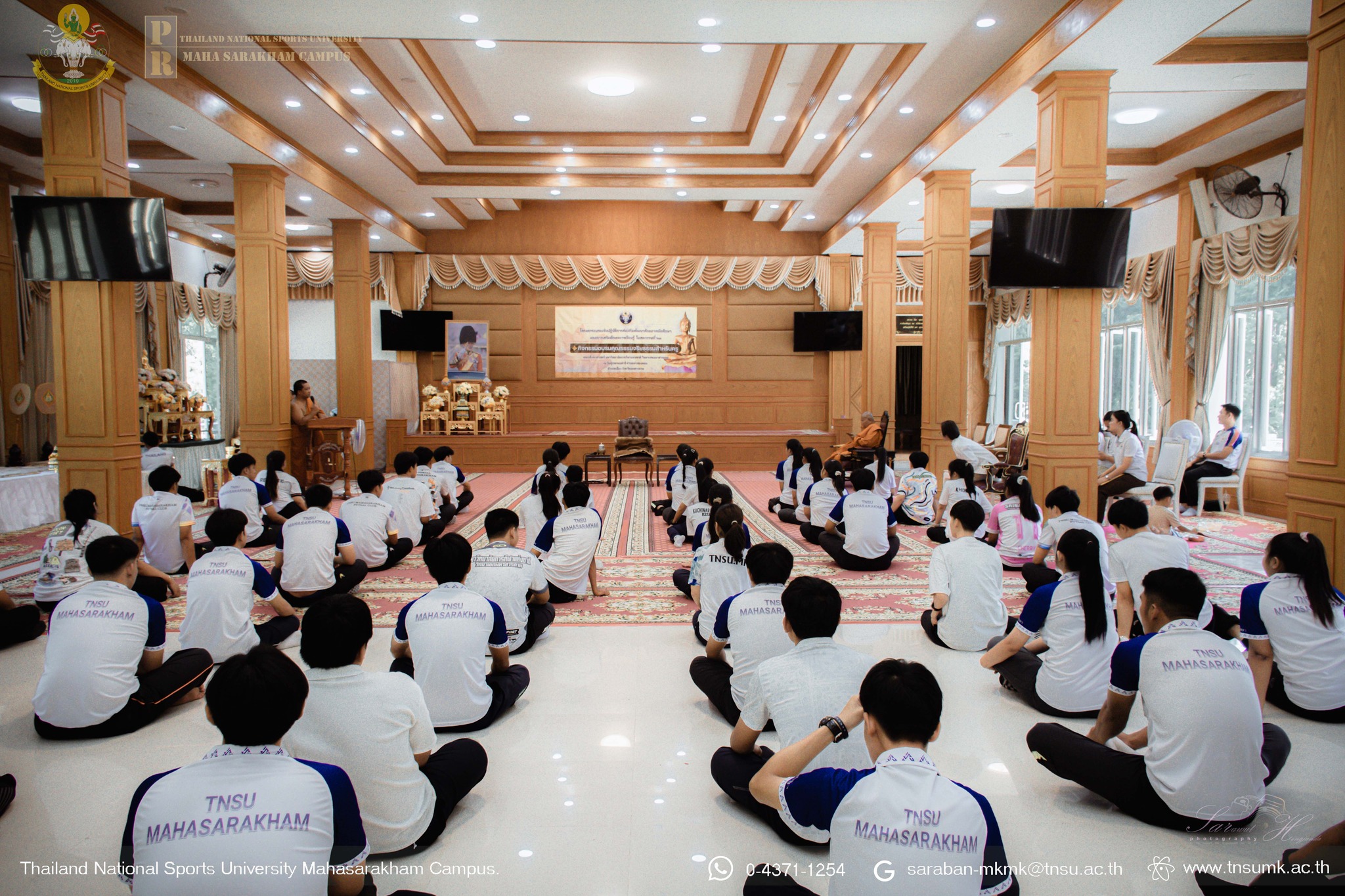 เมื่อวันที่ 8 สิงหาคม 2568 ณ วัดขุนพรหมดำริ ตำบลทำสองคอน อำเภอเมือง จังหวัดมหาสารคาม คณะศึกษาศาสตร์ มหาวิทยาลัยการกีฬาแห่งชาติ วิทยาเขตมหาสารคาม จัดโครงการอบรมคุณธรรมจริยธรรมสำหรับครู โดยมี ผู้ช่วยศาสตราจารย์คำพาง ศรีท้าวปากดี รองคณบดีคณะศึกษาศาสตร์ เป็นประธานเปิดโครงการ ซึ่งการอบรมจริยธรรมในครั้งนี้ เป็นกิจกรรมสำคัญอย่างหนึ่งในกระบวนการผลิตครูให้ได้ตามกรอบมาตรฐานวิชาชีพครูของคุรุสภา งานกิจการนักศึกษาและกิจการพิเศษ คณะศึกษาศาสตร์ จึงจัดทำโครงการดังกล่าวขึ้น มีเป้าหมายเป็นนักศึกษาชั้นปีที่ 4 คณะศึกษาศาสตร์ มีวัตถุประสงค์โครงการเพื่อปลูกฝั่งเกี่ยวกับเรื่องหลักคุณธรรม จริยธรรม ให้กับนักศึกษาได้นำหลักธรรมไปประยุกต์ใช้ในชีวิตประจำวันในการเวียนในมหาวิทยาลัยฯ และประกอบอาชีพต่อไปในอนาคต