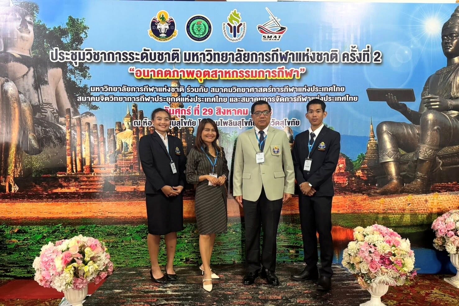 เมื่อวันที่ 29 สิงหาคม 2568 นำโดย ดร.พีระศักดิ์ กิ่งพุ่ม รองอธิการบดี มหาวิทยาลัยการกีฬาแห่งชาติ ประจำวิทยาเขตมหาสารคาม รศ.ดร.ฉวีวรรณ สีสม อาจารย์ คณะวิทยาศาสตร์การกีฬาและสุขภาพ พร้อมด้วยนักศึกษาเข้าร่วมการประชุมวิชาการระดับชาติ มหาวิทยาลัยการกีฬาแห่งชาติ ครั้งที่ 2 ประจำปี พ.ศ. 2568 เป็นการร่วมมือกันระหว่าง มหาวิทยาลัยการกีฬาแห่งชาติ ร่วมกับสมาคมวิทยาศาสตร์การกีฬาแห่งประเทศไทย สมาคมจิตวิทยาการกีฬาประยุกต์แห่งประเทศไทย และสมาคมการจัดการกีฬาแห่งประเทศไทย ณ ห้องประชุมสุโขทัย โรงแรมไพลินสุโขทัย จังหวัดสุโขทัย โดยกิจกรรมภายในงานประกอบด้วย การนำเสนอผลงานแบบโปสเตอร์ และการนำเสนอผลงานทางวิชาการแบบปากเปล่า รวมถึงการเสวนาทางวิชาการภายใต้หัวข้อ “อนาคตภาพอุตสาหกรรมการกีฬา” จากวิทยากรผู้เชี่ยวชาญ