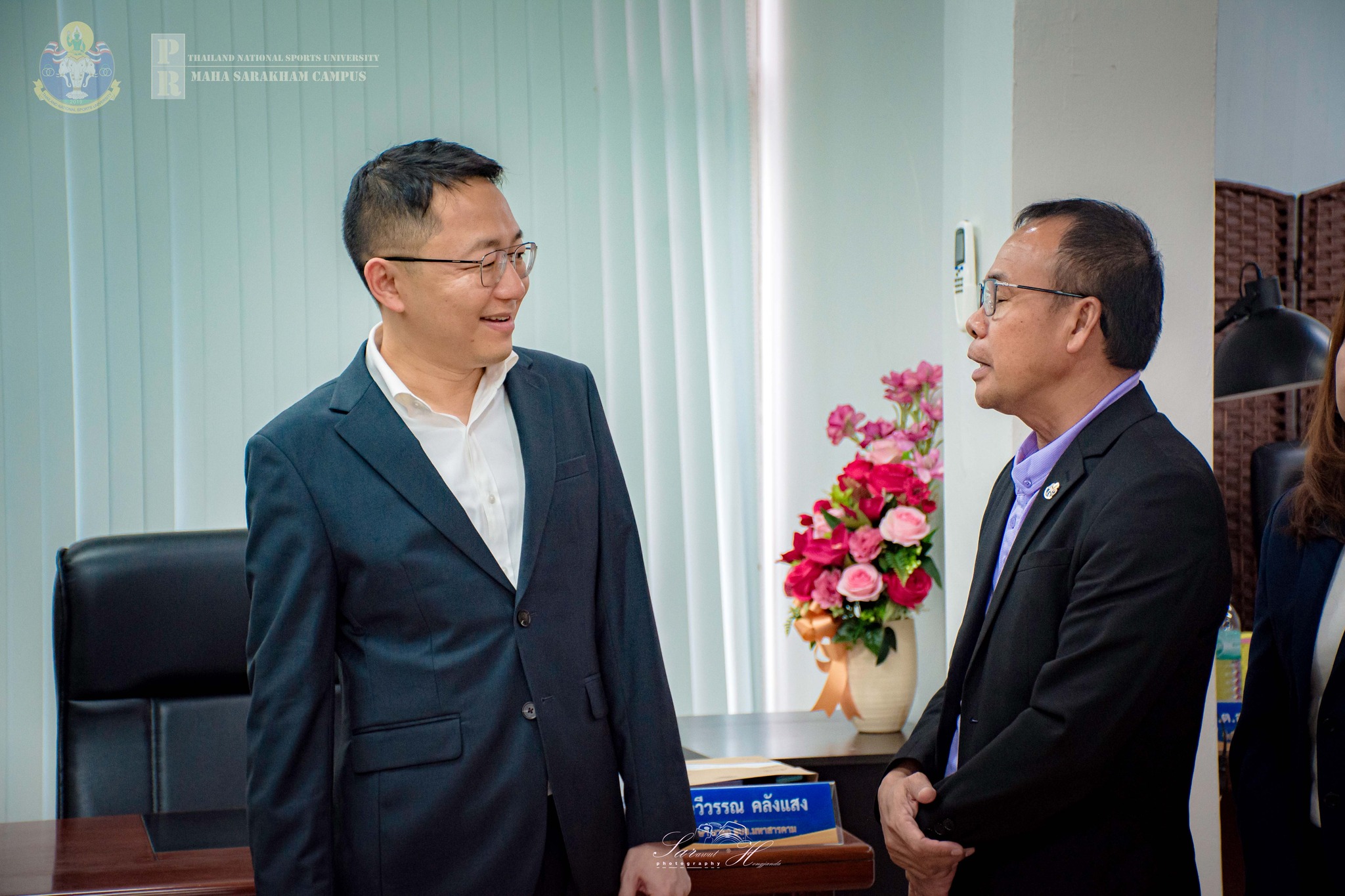 เมื่อวันที่ 21 ตุลาคม 2568 ณ องค์การบริหารส่วนจังหวัดมหาสารคาม ผศ.ดร.นิกร สีแล รองอธิการบดีมหาวิทยาลัยการกีฬาแห่งชาติ ประจำวิทยาเขตมหาสารคาม พร้อมด้วยคณะผู้บริหาร ได้เข้าพบ นายพลพัฒน์ จรัสเสถียร นายกองค์การบริหารส่วนจังหวัดมหาสารคาม เพื่อรายงานตัว ในโอกาสย้ายมาดำรงตำแหน่ง โอกาสนี้ นายพลพัฒน์ จรัสเสถียร นายกองค์การบริหารส่วนจังหวัดมหาสารคาม ได้พูดคุยหารือและวางแผนการทำงานร่วมกันโดยเน้นการรวมกันเพื่อส่งเสริมการพัฒนาด้านการศึกษาและการกีฬาควบคู่กัน ตลอดจนรวมกันขับเคลื่อนและยกระดับพัฒนาให้มีศักยภาพสูงสุด