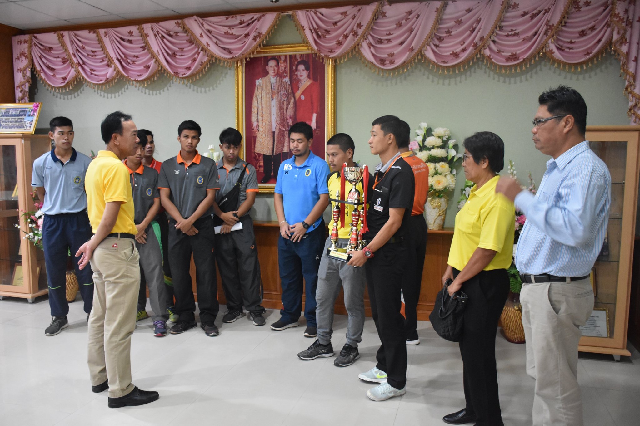 ทีมฟุตบอลชายมหาวิทยาลัยการกีฬาแห่งชาติ วิทยาเขตมหาสารคาม นำโดย ผศ.อารีย์ แก่นวงศ์คำ ผู้จัดการทีมฟุตบอลชายมหาวิทยาลัยการกีฬาแห่งชาติ วิทยาเขตมหาสารคาม เข้าพบและมอบถ้วยรางวัลชนะเลิศการแข่งขันฟุตบอล บ่อใหญ่ คัพ ครั้งที่ 1 ระหว่างวันที่ 22 มิ.ย 2562 ถึง 14 ก.ค 2562 ที่ผ่านมา ให้กับนายกอบกิจ ธรรมานุชิต รองอธิการมหาวิทยาลัยการกีฬาแห่งชาติ ประจำวิทยาเขตมหาสารคาม ในโอกาสนี้ นายกอบกิจ ธรรมานุชิต ยังได้กล่าวขอบคุณและแสดงความยินดีกับทีมนักกีฬาอีกด้วย