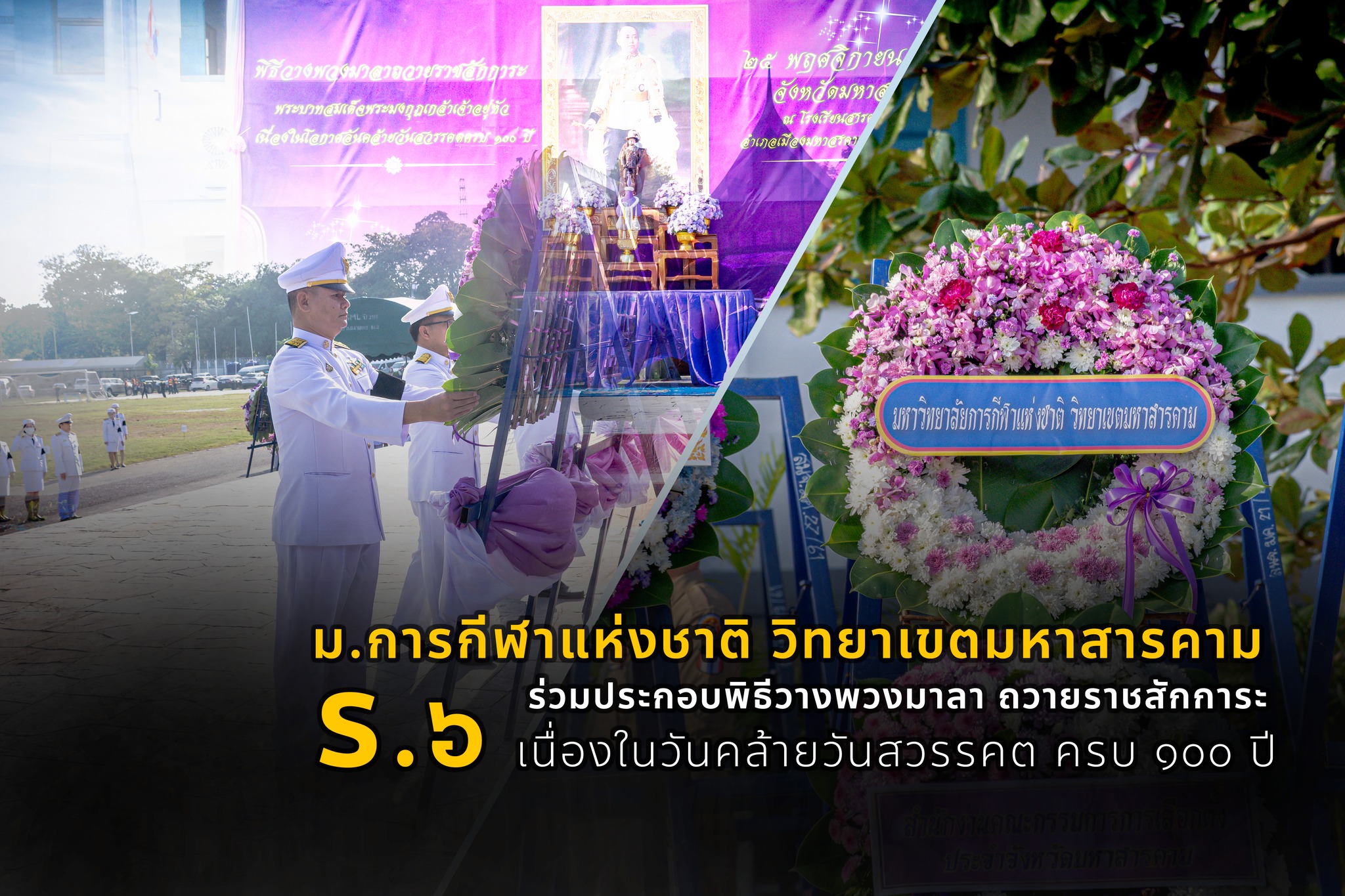 วันที่ 25 พฤศจิกายน 2568 เวลา 08.30 น. ณ โรงเรียนสารคามพิทยาคม มหาวิทยาลัยการกีฬาแห่งชาติ วิทยาเขตมหาสารคาม ได้เข้าร่วมประกอบพิธีวางพวงมาลาและถวายราชสักการะ พระบาทสมเด็จพระมงกุฎเกล้าเจ้าอยู่หัว เนื่องในวันคล้ายวันสวรรคต ครบ 100 ปี เพื่อรำลึกในพระมหากรุณาธิคุณอันล้นพ้นหาที่สุดมิได้ โดย ผศ.ดร.นิกร สีแล รองอธิการบดีมหาวิทยาลัยการกีฬาแห่งชาติ ประจำวิทยาเขตมหาสารคามได้มอบหมายให้ ว่าที่ร้อยตรี ดร.กิติชัย แสนสุวรรณ ผู้ช่วยอธิการบดีฝ่ายกิจการนักศึกษาและกิจการพิเศษ พร้อมด้วยผู้บริหารและคณาจารย์ของมหาวิทยาลัย เข้าร่วมในพิธีอย่างพร้อมเพรียง พิธีในครั้งนี้ได้รับเกียรติจาก นายกองเอกเสนีย์ มะโน รองผู้ว่าราชการจังหวัดมหาสารคาม ทำหน้าที่ประธานในพิธี ท่ามกลางบรรยากาศที่สงบ ขรึมขลัง และเปี่ยมด้วยความสำนึกในพระราชกรณียกิจสำคัญของพระองค์ อันรวมถึงการจัดตั้งกองเสือป่าและลูกเสือ เพื่อปลูกฝังความรักชาติและวินัยการปฏิรูประบบการปกครอง ผ่านการจัดตั้ง “ดุสิตธานี” เพื่อทดลองประชาธิปไตยการปฏิรูปการศึกษา นำสู่การก่อตั้งโรงเรียนมหาดเล็กหลวง (ปัจจุบันคือโรงเรียนวชิราวุธวิทยาลัย)การปฏิรูปกฎหมาย โดยเฉพาะการตรา พระราชบัญญัตินามสกุล ซึ่งเป็นรากฐานสำคัญของสังคมไทย มหาวิทยาลัยการกีฬาแห่งชาติ วิทยาเขตมหาสารคาม ขอน้อมสำนึกในพระมหากรุณาธิคุณ และสืบสานแนวทางการพัฒนาคนไทยให้เป็นพลเมืองที่เข้มแข็ง สมบูรณ์ พร้อมรับใช้ชาติบ้านเมืองสืบไป