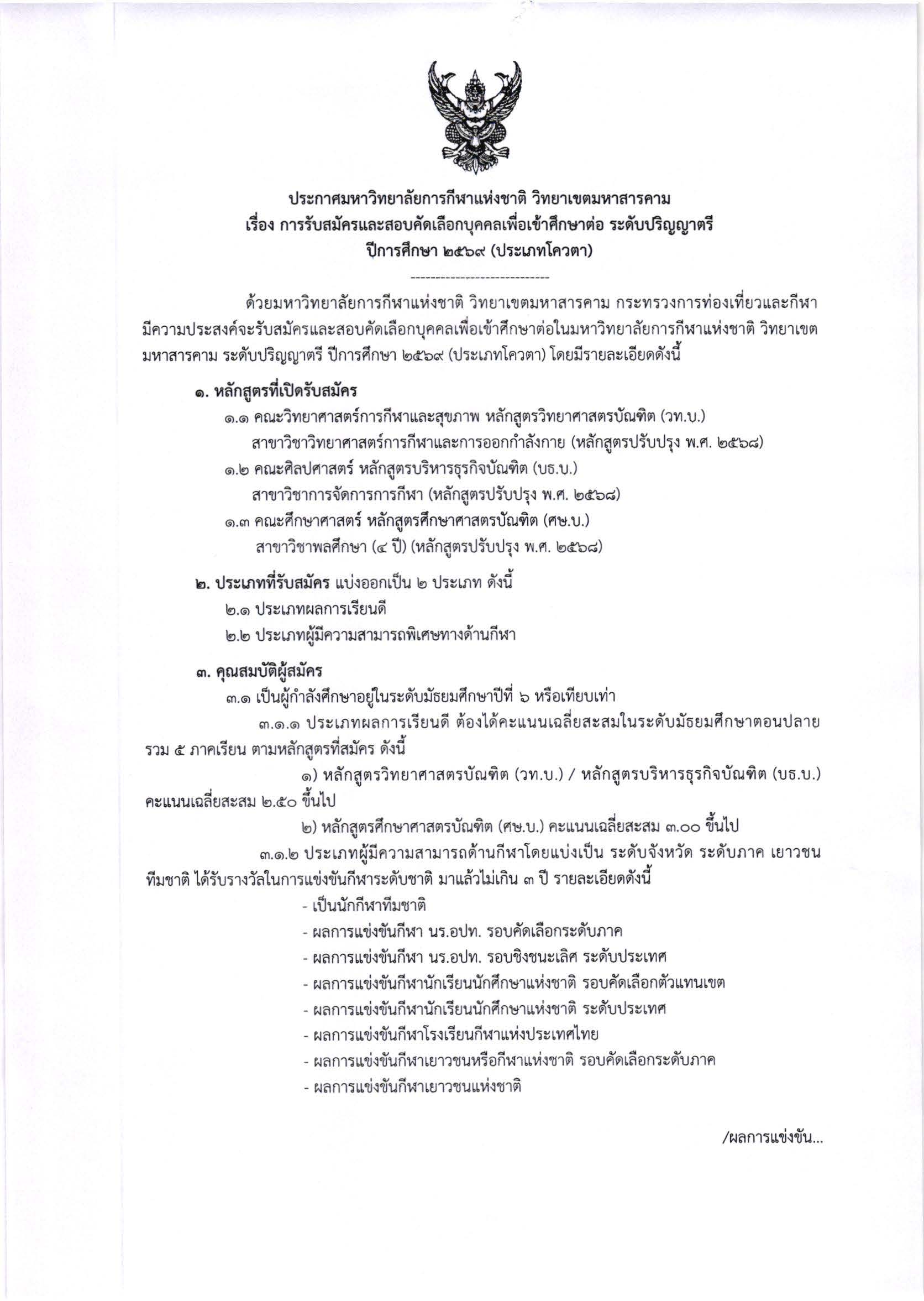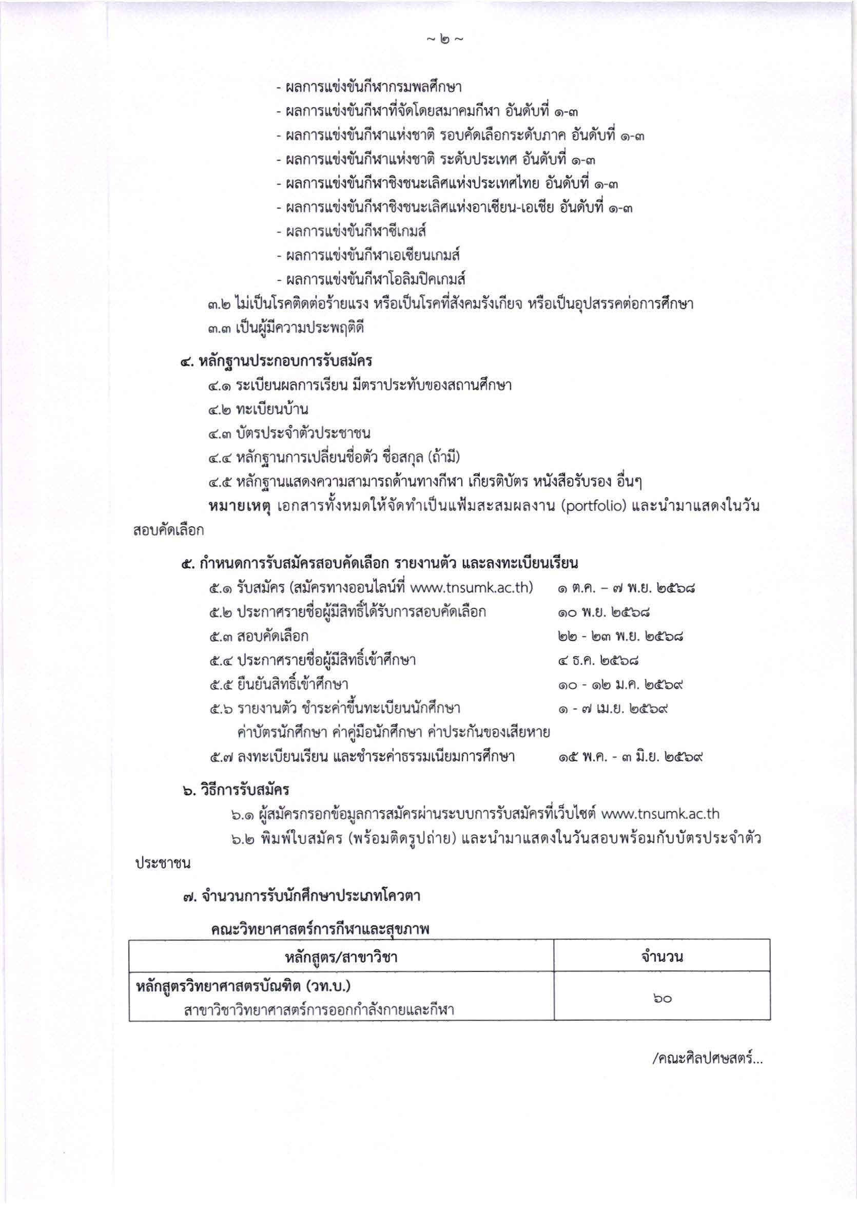 ประกาศ รับสมัครและสอบคัดเลือกบุคคลเข้าศึกษาต่อ ระดับปริญญาตรี ประจำปีการศึกษา 2569 (ประเภทโควตา)