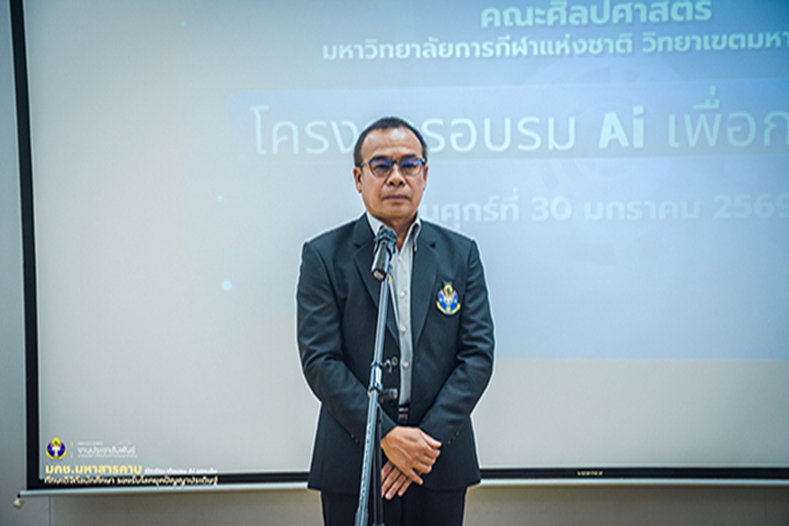 เมื่อวันที่ 30 มกราคม 2569 ณ ห้องคอมพิวเตอร์ ชั้น 3 คณะศิลปศาสตร์ มหาวิทยาลัยการกีฬาแห่งชาติ วิทยาเขตมหาสารคาม ได้จัดโครงการอบรม “AI เพื่อการศึกษา” ประจำปีการศึกษา 2568 โดยมีผู้ช่วยศาสตราจารย์ ดร.นิกร สีแล รองอธิการบดีมหาวิทยาลัยการกีฬาแห่งชาติ ประจำวิทยาเขตมหาสารคาม เป็นประธานในพิธีเปิดโครงการ และผู้ช่วยศาสตราจารย์นภาพรรณ จัตุรโพธิ์ ในนามผู้รับผิดชอบโครงการ กล่าวรายงานวัตถุประสงค์ ผู้ช่วยศาสตราจารย์นภาพรรณ จัตุรโพธิ์ กล่าวว่า ในปัจจุบันเทคโนโลยีปัญญาประดิษฐ์ (Artificial Intelligence: AI) ได้เข้ามามีบทบาทสำคัญต่อระบบการศึกษาและการทำงานในโลกยุคดิจิทัลอย่างรวดเร็ว คณะศิลปศาสตร์จึงจัดโครงการอบรมดังกล่าวขึ้น เพื่อเสริมสร้างความรู้ความเข้าใจเกี่ยวกับการใช้ AI อย่างถูกต้องและเหมาะสม พร้อมพัฒนาทักษะการนำ AI ไปประยุกต์ใช้ในการเรียนรู้ และต่อยอดสู่การทำงานในอนาคตการอบรมครั้งนี้มีนักศึกษาคณะศิลปศาสตร์ ชั้นปีที่ 3 เข้าร่วมจำนวน 31 คน โดยได้รับเกียรติจาก ดร.เอกวิจัย เมยไธสง อาจารย์จากคณะวิทยาศาสตร์การกีฬาและสุขภาพ เป็นวิทยากรถ่ายทอดองค์ความรู้ด้านการใช้ AI เพื่อการศึกษาอย่างเป็นระบบ ครอบคลุมทั้งภาคทฤษฎีและการฝึกปฏิบัติจริง โครงการอบรม AI เพื่อการศึกษานับเป็นอีกก้าวสำคัญของมหาวิทยาลัยการกีฬาแห่งชาติ วิทยาเขตมหาสารคาม ในการขับเคลื่อนการพัฒนานักศึกษาให้มีทักษะดิจิทัลที่ทันสมัย พร้อมรองรับการเปลี่ยนแปลงของโลกการศึกษาและตลาดแรงงานในศตวรรษที่ 21 อย่างมีประสิทธิภาพ