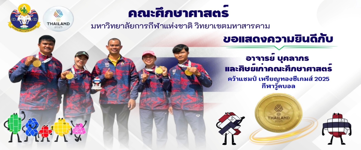 มหาวิทยาลัยการกีฬาแห่งชาติ วิทยาเขตมหาสารคาม ขอแสดงความยินดีกับ อาจารย์ บุคลากร และศิษย์เก่าคณะศึกษาศาสตร์ คว้าแชมป์ เหรียญทองซีเกมส์ 2025 กีฬาวู้ดบอล