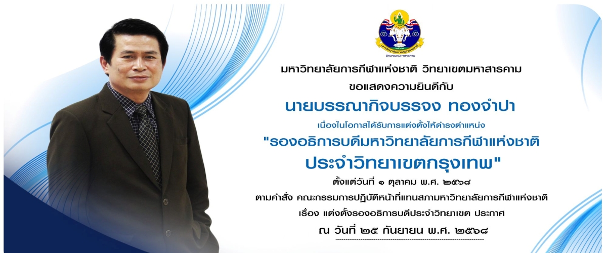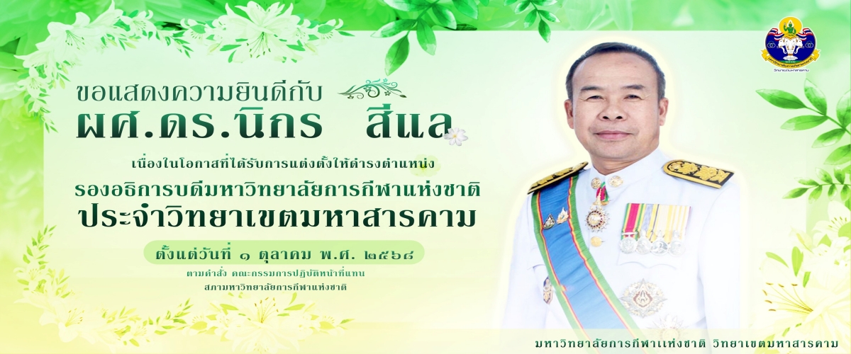 วันจันทร์ที่ 6 ตุลาคม พ.ศ. 2568 เวลา 07.09 น. ผศ.ดร.นิกร สีแล รองอธิการบดีมหาวิทยาลัยการกีฬาแห่งชาติ ประจำวิทยามหาสารคาม พร้อมด้วยคณะผู้บริหาร คณาจารย์และบุคลากร...