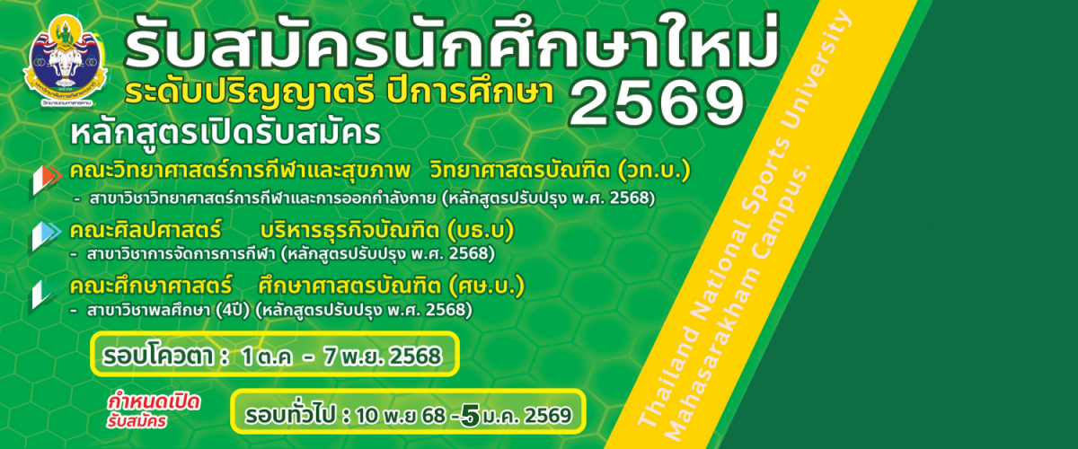 เมื่อวันเสาร์ที่ 13 ธันวาคม 2568 ณ บริเวณหน้าสนามปรีดารอดโพธิ์ทอง มหาวิทยาลัยการกีฬาแห่งชาติ วิทยาเขตมหาสารคาม โดยมี ผู้ช่วยศาสตราจารย์ ดร.นิกร สีแล...