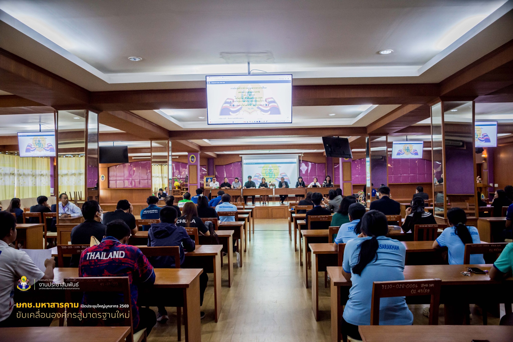 เมื่อวันศุกร์ที่ 30 มกราคม 2569 เวลา 10.00 น. ณ ห้องประชุมวรรณกลาง อาคารวิทยบริการ ชั้น 2 มหาวิทยาลัยการกีฬาแห่งชาติ วิทยาเขตมหาสารคาม โดยมี ผู้ช่วยศาสตราจารย์ ดร.นิกร สีแล รองอธิการบดีมหาวิทยาลัยการกีฬาแห่งชาติ ประจำวิทยาเขตมหาสารคาม เป็นประธานเปิดการประชุมอย่างเป็นทางการ เพื่อกำหนดทิศทางการบริหารงานของมหาวิทยาลัยในปีงบประมาณ 2569 ให้เป็นไปอย่างมีระบบ มีประสิทธิภาพ และสอดคล้องกับนโยบายของมหาวิทยาลัยการกีฬาแห่งชาติ รวมถึงยุทธศาสตร์การพัฒนาการศึกษาและการกีฬาของประเทศ การประชุมครั้งนี้ถือเป็นการประชุมใหญ่บุคลากรครั้งแรกของปีงบประมาณ 2569 เพื่อสร้างความเข้าใจร่วมกันทั้งองค์กร พร้อมขับเคลื่อนนโยบายสำคัญด้านการพัฒนาการศึกษา กีฬา และสุขภาพ ตามแนวทางของกระทรวงการท่องเที่ยวและกีฬา มหาวิทยาลัยฯ มุ่งเน้นการพัฒนาองค์กรใน 4 มิติหลัก ได้แก่