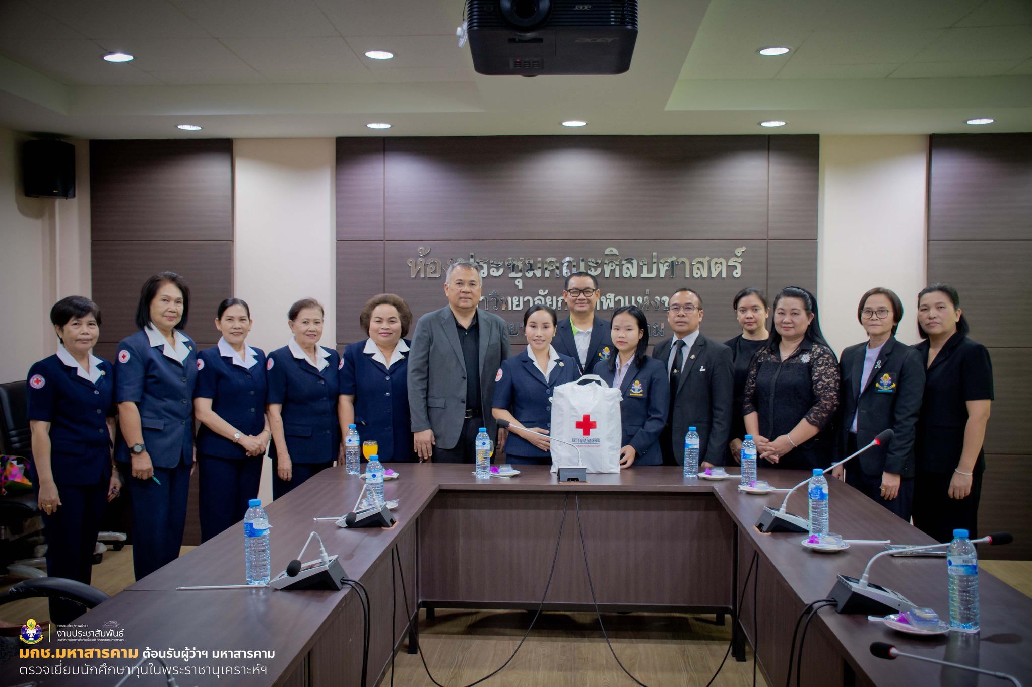 ต่อมาในเวลา 10.00 น. ณ ห้องประชุมคณะศิลปศาสตร์ ผู้ว่าราชการจังหวัดมหาสารคาม พร้อมด้วยนายกเหล่ากาชาดจังหวัดมหาสารคาม และคณะ ได้เข้าพบนักศึกษาที่ได้รับทุนพระราชานุเคราะห์ พร้อมมอบโอวาทและให้กำลังใจแก่ นางสาวเรณุกา เวียงคำ นักศึกษาชั้นปีที่ 3 คณะศิลปศาสตร์ มหาวิทยาลัยการกีฬาแห่งชาติ วิทยาเขตมหาสารคาม