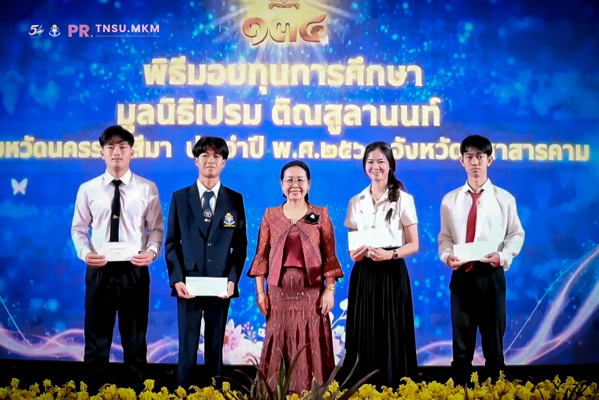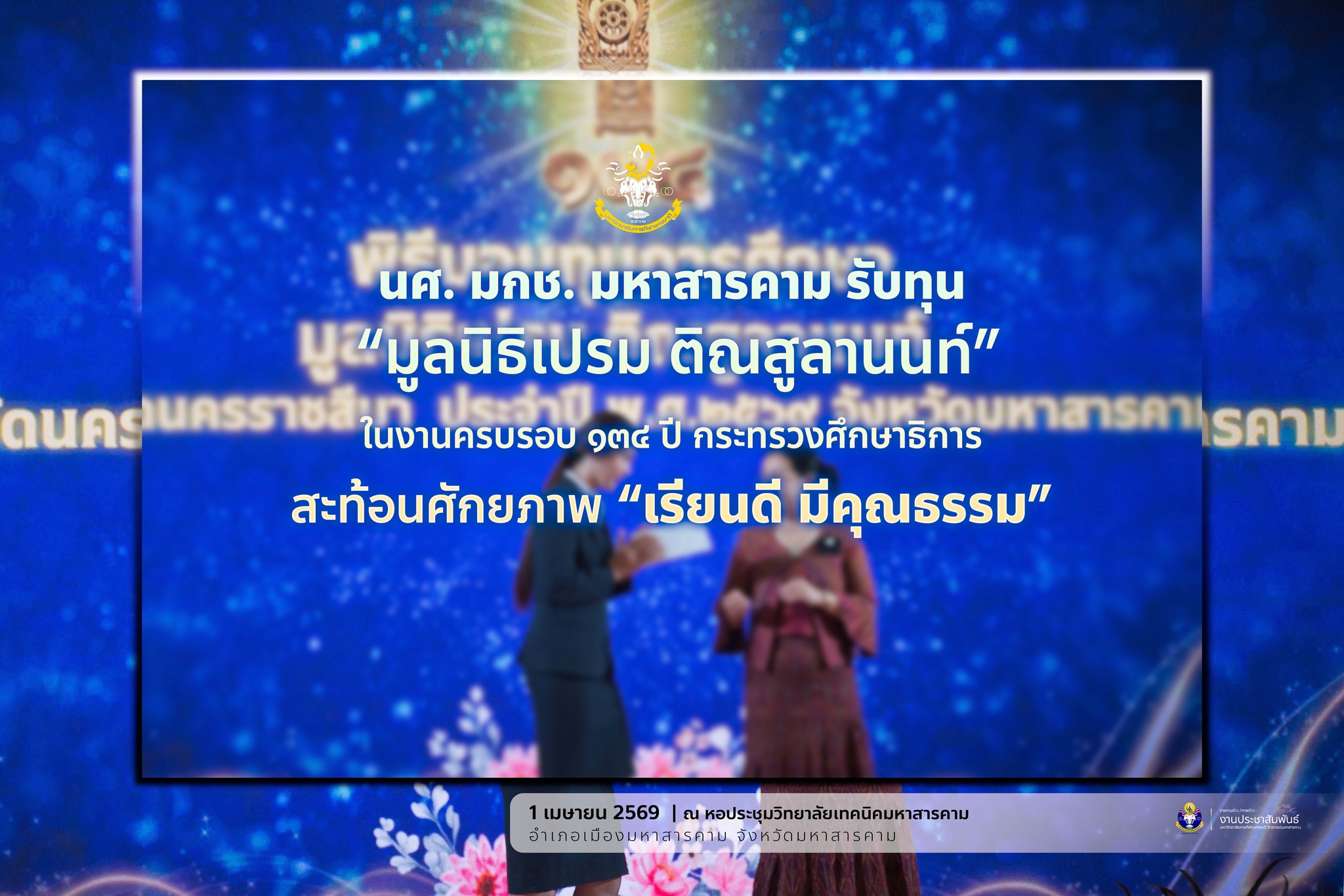 เมื่อวันที่ 1 เมษายน 2569 เวลา 09.00 น. ณ หอประชุมวิทยาลัยเทคนิคมหาสารคาม ผู้ช่วยศาสตราจารย์ ดร.นิกร สีแล รองอธิการบดีมหาวิทยาลัยการกีฬาแห่งชาติ ประจำวิทยาเขตมหาสารคาม มอบหมายให้นางสาวสุภัสสร คำแพงศรี หัวหน้างานแนะแนวการศึกษา ฝ่ายกิจการนักศึกษาและกิจการพิเศษ นำนักศึกษาเข้าร่วมพิธีมอบทุนการศึกษามูลนิธิเปรม ติณสูลานนท์ ประจำปี 2569 พิธีดังกล่าวจัดขึ้นเนื่องในโอกาสวันคล้ายวันสถาปนากระทรวงศึกษาธิการ ครบรอบ 134 ปี โดยมีนายกองเอก เสนีย์ มะโน รองผู้ว่าราชการจังหวัดมหาสารคาม เป็นประธานในพิธี และได้รับเกียรติจาก ดร.พุทธารัตน์ ทะสา ศึกษาธิการจังหวัดมหาสารคาม เป็นผู้มอบทุนการศึกษา ภายใต้นโยบาย “เรียนดี มีคุณธรรม” ซึ่งมุ่งยกระดับคุณภาพผู้เรียน ครู และบุคลากรทางการศึกษา ทั้งนี้ มีนักศึกษามหาวิทยาลัยการกีฬาแห่งชาติ วิทยาเขตมหาสารคาม ได้รับทุนการศึกษามูลนิธิเปรม ติณสูลานนท์ จำนวน 4 ทุน ประกอบด้วย ทุนการศึกษาประเภทรายปี