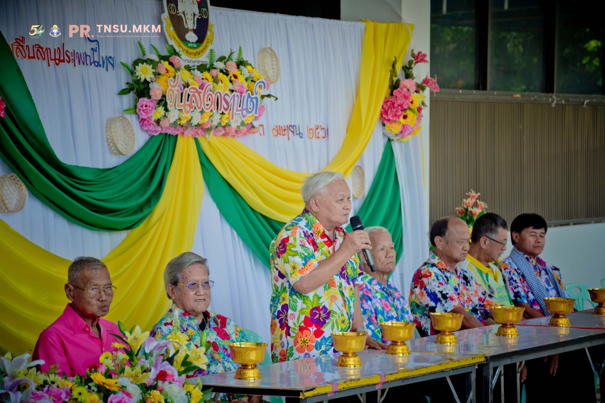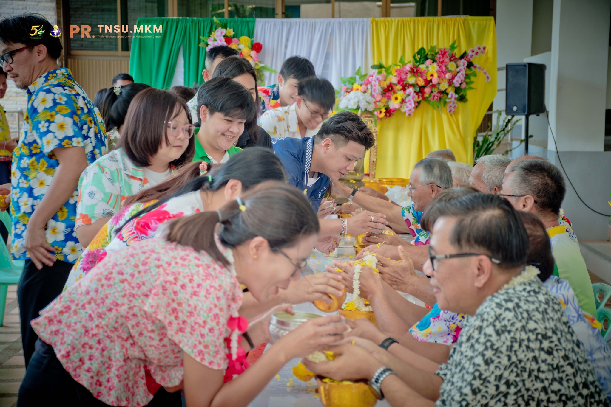 เมื่อวันที่ 3 เมษายน 2569 ผู้ช่วยศาสตราจารย์ ดร.นิกร สีแล รองอธิการบดีประจำวิทยาเขตมหาสารคาม นำคณะผู้บริหาร คณาจารย์ บุคลากร ตลอดจนเจ้าหน้าที่ มหาวิทยาลัยการกีฬาแห่งชาติ วิทยาเขตมหาสารคาม ร่วมสืบสานประเพณีไทย เนื่องในโครงการวันสำคัญทางพระพุทธศาสนาและประเพณีไทย (วันสงกรานต์) ประจำปี 2569 โดยจัดกิจกรรมสรงน้ำพระพุทธรูปและสิ่งศักดิ์สิทธิ์ภายในมหาวิทยาลัย เพื่อความเป็นสิริมงคลแก่หน่วยงานและบุคลากร ภายในงานยังได้จัดพิธีรดน้ำดำหัว ขอพรจากอาจารย์อาวุโส เพื่อแสดงความเคารพ กตัญญูกตเวที และสืบทอดคุณค่าทางวัฒนธรรมไทย อันเป็นแบบอย่างที่ดีงาม ตลอดจนเป็นการเสริมสร้างความรัก ความสามัคคี และความผูกพันภายในองค์กร ในการนี้ ได้รับเกียรติจากท่านวิรัตน์ ระภาพันธ์ อดีตผู้อำนวยการวิทยาลัยพลศึกษามหาสารคาม (พ.ศ. 2534–2537) และท่านปรีชาวัจฐ์ เรืองขวัญดี อดีตผู้อำนวยการวิทยาลัยพลศึกษามหาสารคาม คนสุดท้าย และรองอธิการบดีสถาบันการพลศึกษา วิทยาเขตมหาสารคาม คนแรก ตลอดจนอาจารย์อาวุโสอีกหลายท่าน เข้าร่วมในพิธี ซึ่งล้วนเป็นผู้มีคุณูปการสำคัญต่อการพัฒนาสถาบัน สำหรับการจัดกิจกรรมในครั้งนี้ มีวัตถุประสงค์เพื่อสืบสานและอนุรักษ์ประเพณีอันดีงามของไทย เนื่องในวันสงกรานต์ ซึ่งถือเป็นวันขึ้นปีใหม่ตามประเพณีไทย และเป็นช่วงเวลาแห่งความรัก ความผูกพัน และความอบอุ่นของครอบครัวและสังคม โดยบรรยากาศเป็นไปอย่างอบอุ่น เรียบง่าย และเปี่ยมด้วยความเคารพรัก สะท้อนถึงสายใยความสัมพันธ์ระหว่างผู้บริหาร บุคลากร และคณาจารย์อาวุโส ที่ยังคงแน่นแฟ้นและสืบสานต่อไปอย่างงดงาม
