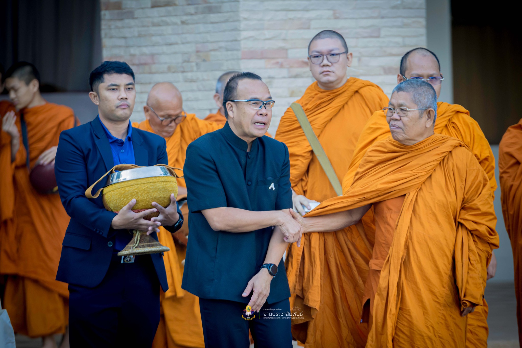 จากนั้น ผู้บริหารและผู้เข้าร่วมพิธีได้ร่วมถวายจตุปัจจัยเครื่องไทยธรรม และถวายภัตตาหารเช้าแด่พระสงฆ์ ก่อนร่วมกิจกรรมทำบุญตักบาตรข้าวสารอาหารแห้ง เพื่อความเป็นสิริมงคลและเป็นขวัญกำลังใจในการเริ่มต้นปีใหม่ พุทธศักราช 2569 อย่างเป็นมงคล