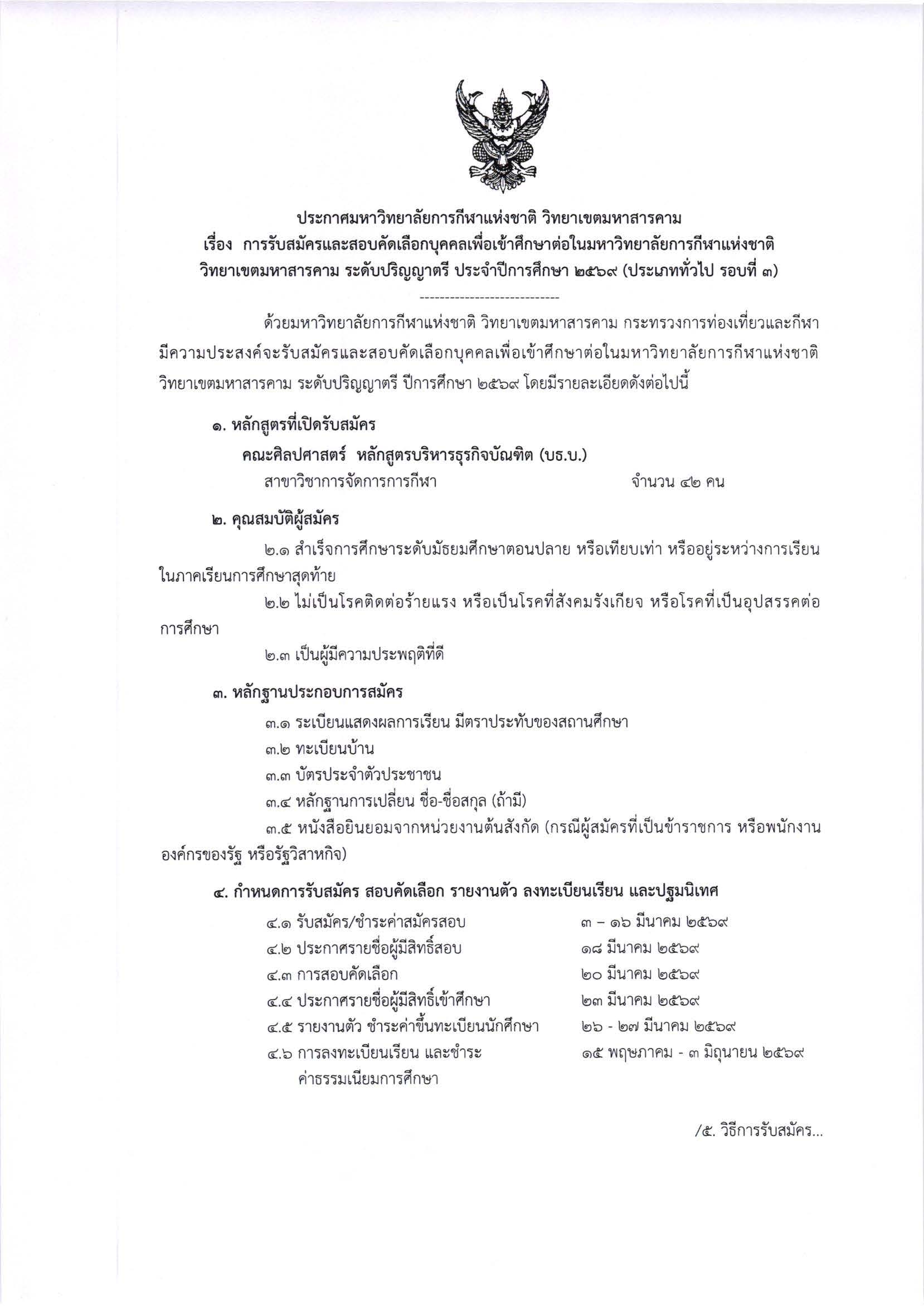 ประกาศ รับสมัครและสอบคัดเลือกบุคคลเข้าศึกษาต่อ ระดับปริญญาตรี ประจำปีการศึกษา 2569 (ประเภททั่วไป รอบที่ 3)